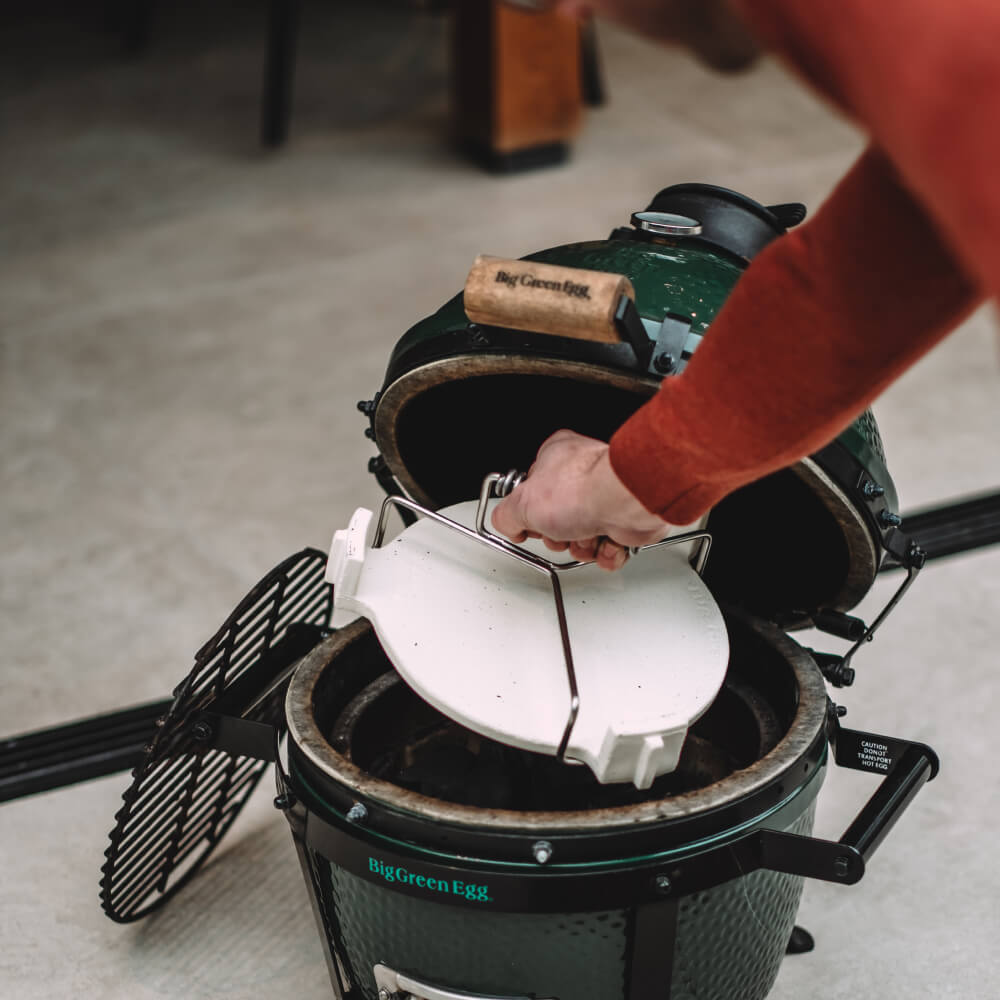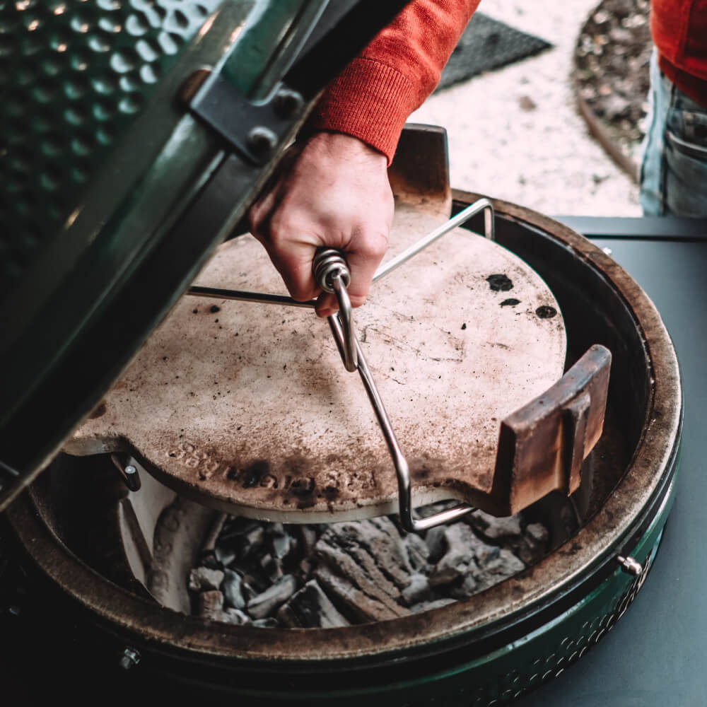 Deze accessoire is ontwikkeld om de Plate Setter of ConvEggtor veilig uit een Big Green Egg te tillen. Tijdens het gebruik van uw Big Green Egg kan deze extreem hoge temperaturen bereiken.