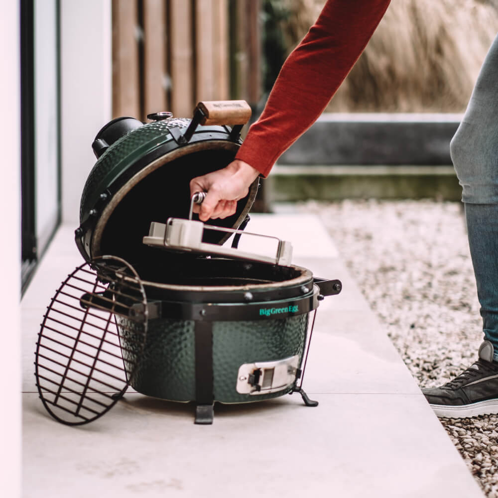 De Egguipment Conveggtor Lifter zorgt ervoor dat u die hete ConvEggtor ergens veilig kan opbergen. U wilt natuurlijk uw huisdieren of familie niet verwonden omdat u in alle haast besloot de Plate Setter maar even naast de Big Green Egg te zetten.