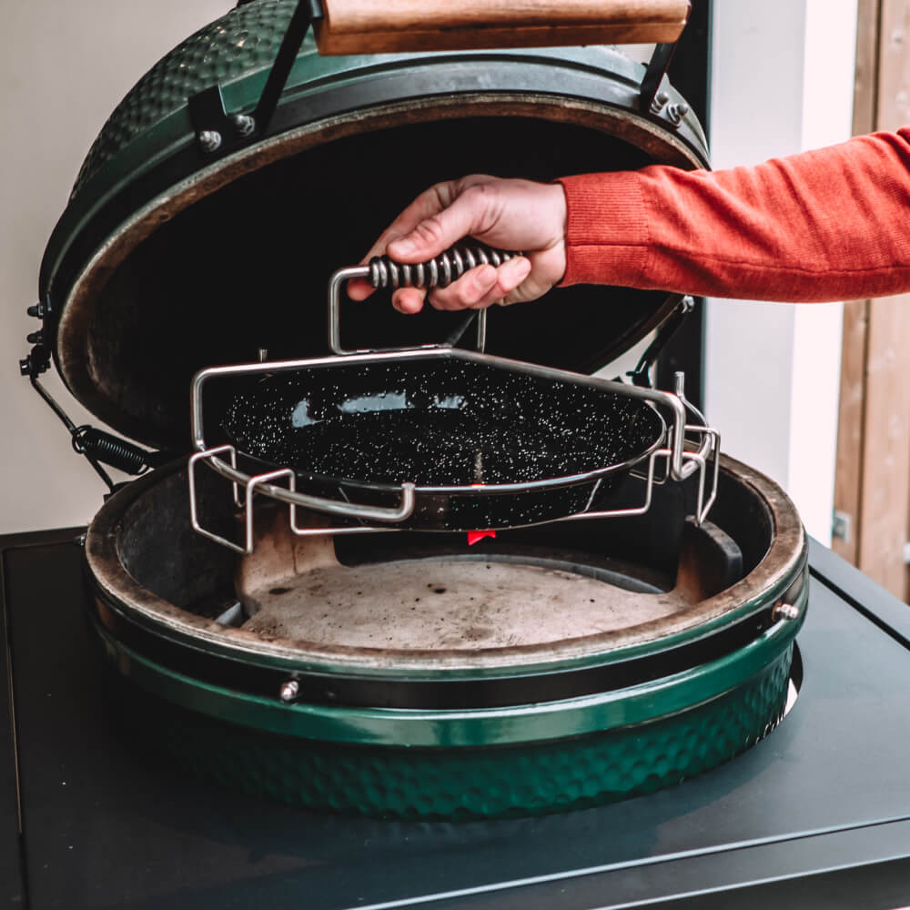Na de worsteling om de ConvEggtor uit uw Big Green Egg te krijgen (hopelijk zonder uw handen te branden) moet u deze nog ergens veilig op zien te bergen. Hittebestendige handschoenen zullen u daarbij niet al te lang helpen..